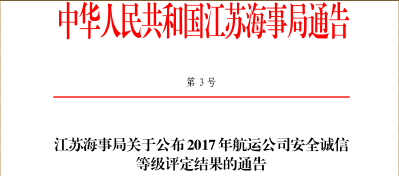 近日,在江蘇海事局組織開展的2017年轄區航運公司安全誠信等級評定工作中,中港建設集團在129家航運公司中脫穎而出,被授予“江蘇海事局安全誠信等級A級公司”榮譽稱號。...